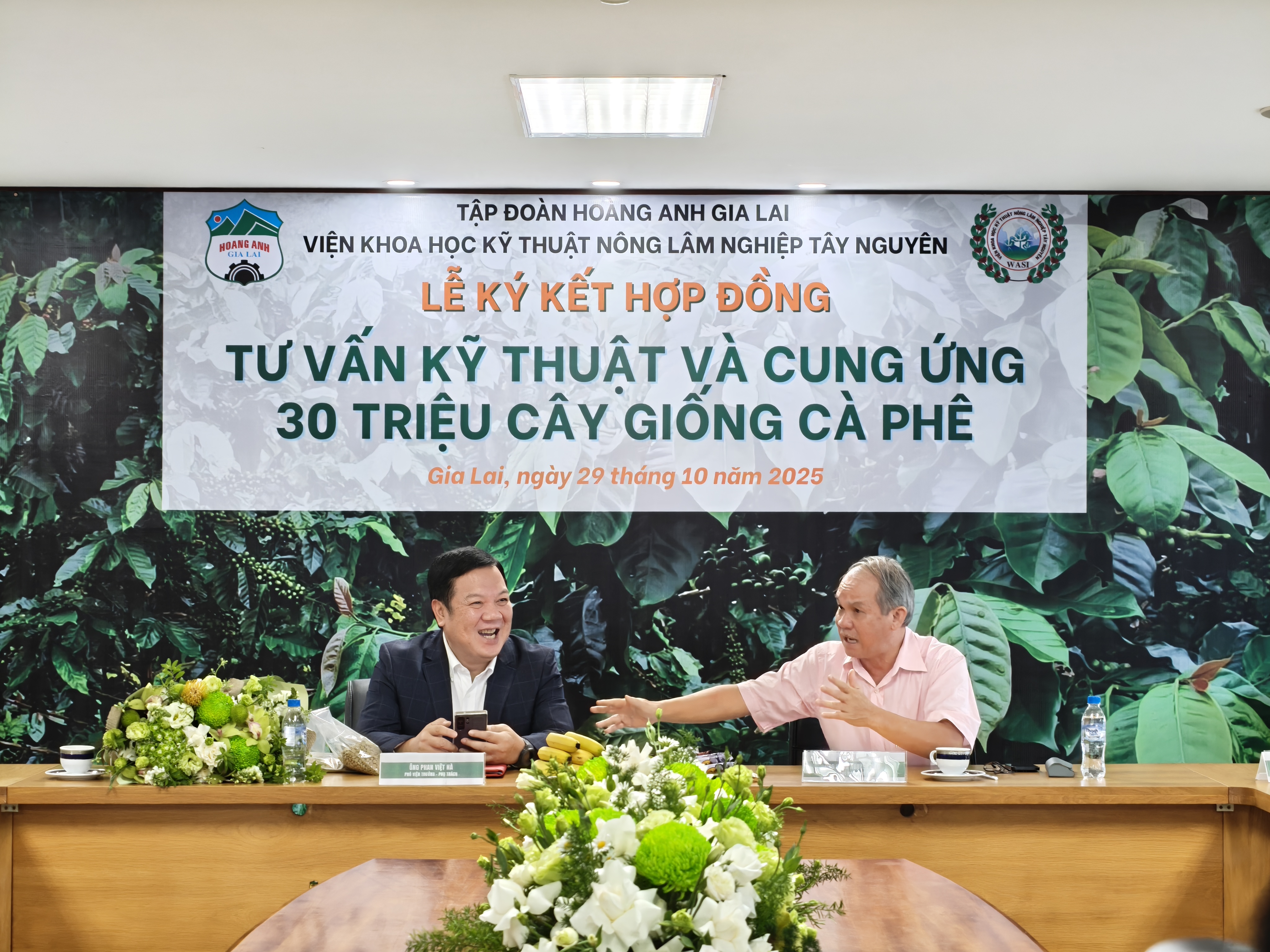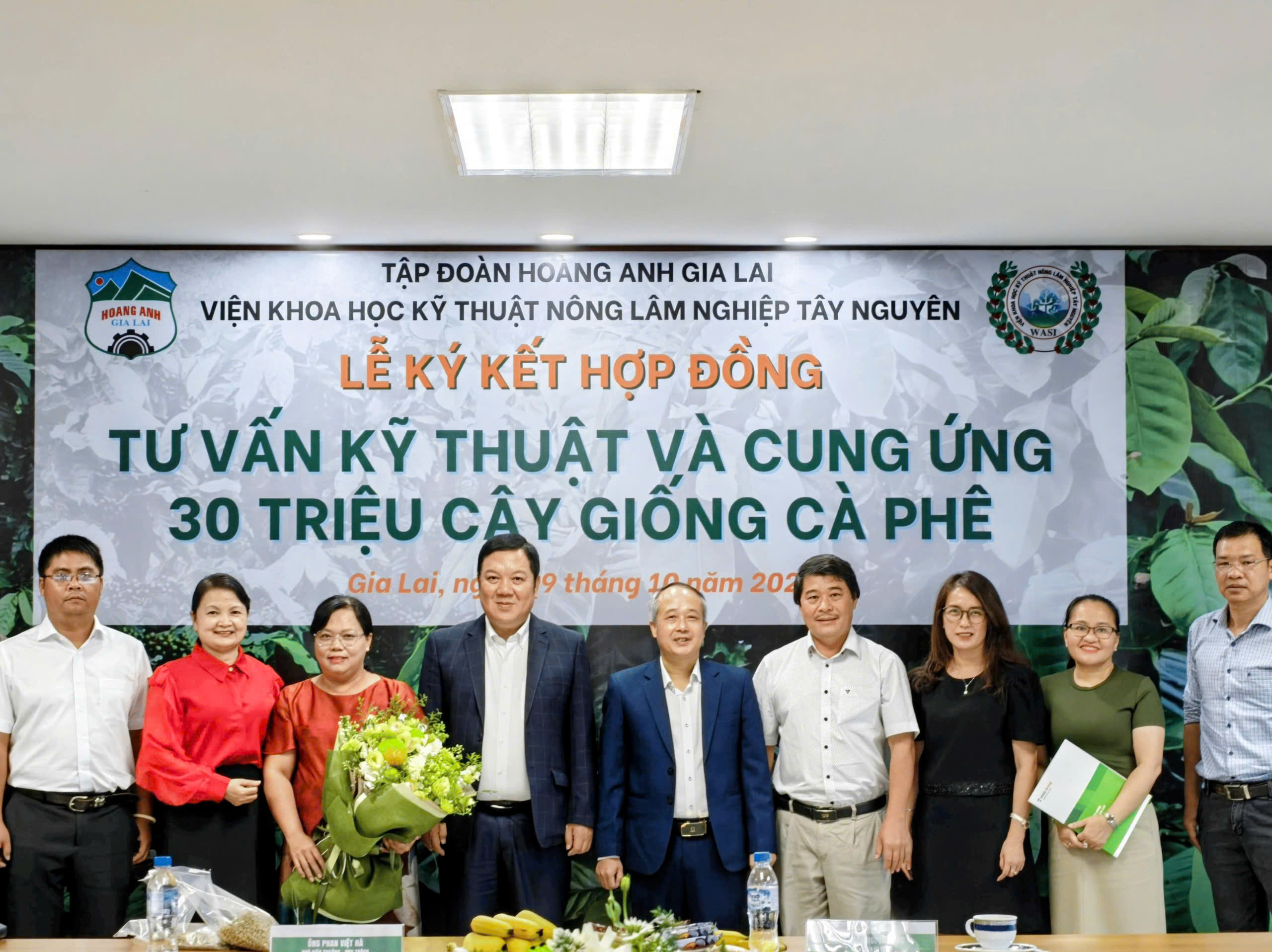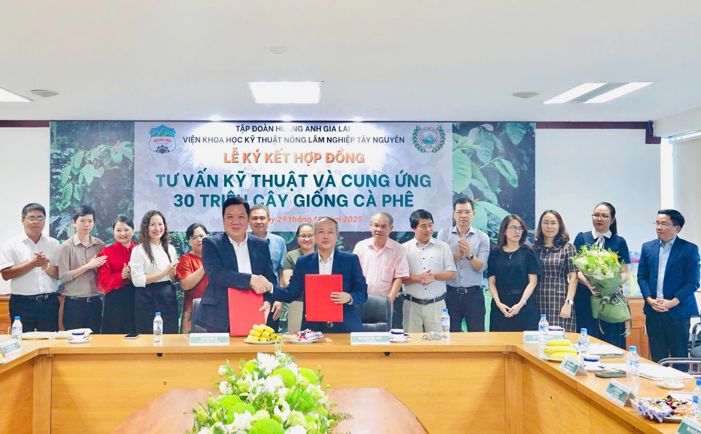 Chiều nay, ngày 29 tháng 10 năm 2025, tại trụ sở chính Công ty Cổ phần Hoàng Anh Gia Lai (HAGL), lễ ký kết Hợp đồng tư vấn kỹ thuật và cung ứng 30 triệu cây giống cà phê giữa HAGL và Viện Khoa học Kỹ thuật Nông Lâm nghiệp Tây Nguyên (WASI) đã được tổ chức trang trọng.